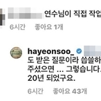 배우 하연수, 이번에도 SNS '싸늘' 답변 파문…일침과 예민 사이 "부끄러움 無"