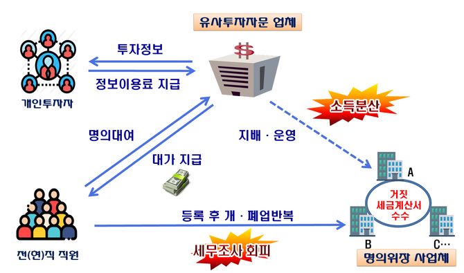 해당 업체는 법인세 등 수십억원을 추징받고, 명의를 빌려준 전·현직 직원 등은 조세범처벌법에 따라 벌금을 부과받았다.