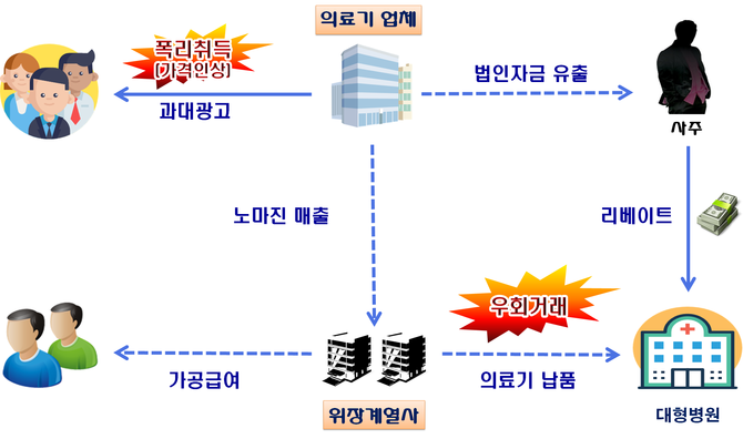 대형병원 등에 리베이트 제공하기 위해 이미 회수한 매출채권(가공자산)을 허위로 계상하여 법인자금을 유출하기도 했다.