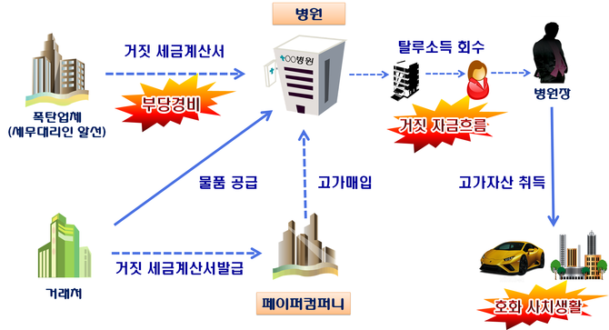 국세청은 폭탄업체 등 관련인의 의심계좌까지 금융계좌를 추적해 병원장 소유 임을 확인했다.