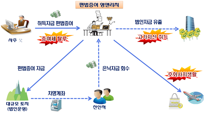 그는 편법증여 받은 재산과 탈루한 소득으로 서울 강남에 50억원이 넘는 꼬마빌딩 두 채를 취득하고, 최근 5년 30회가 넘는 해외여행·명품구입 등 호화·사치생활을 누렸다.