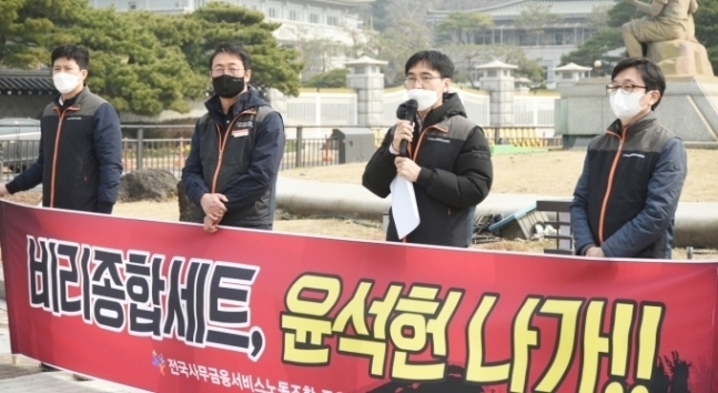 15일 전국사무금융서비스노동조합 금융감독원지부는 청와대 앞에서 윤 원장에 대한 청와대 민정수석실의 감찰 청구와 해임을 요구하는 기자회견을 가졌다.