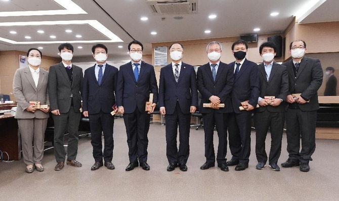 (조세금융신문=고승주 기자) 홍남기 부총리 겸 기획재정부 장관이 고액체납자가 은닉한 가상자산을 추적해 징수한 세무공무원들에게 유척(鍮尺)을 전달했다.