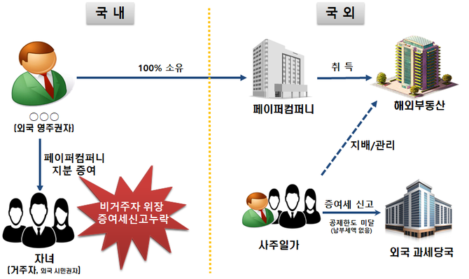 거주자 A는 외국 영주권을 취득한 후 자녀에게 물려줄 해외 부동산을 매입하기 위해 현지에 페이퍼컴퍼니를 세웠다.