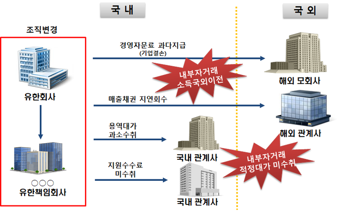 B는 과도한 경영자문료 계약 등 은밀한 내부 거래를 통해 해외 모회사에 거액의 경영자문료를 지급하여 기업을 적자상태로 만들었다.