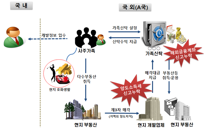 이 회사는 부동산 사들이고 관리하는 것 외에 별도의 사업활동 없었고, A는 해당 회사 지분을 자녀에게 넘겨주는 방법으로 해외부동산을 편법 증여했다.