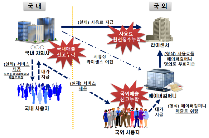 라이센서에 지급할 사용료를 페이퍼컴퍼니가 지급한 것처럼 위장하여 사용료에 대한 원천징수분을 누락하기도 했다.