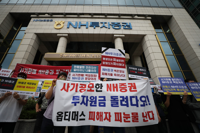 이날 분조위에서 금감원은 옵티머스 펀드 투자자에게 투자원금 전액을 돌려주라는 내용의 100% 배상안을 상정할 예정이다. NH투자증권 고객 2명의 분쟁조정건이 상정된다.