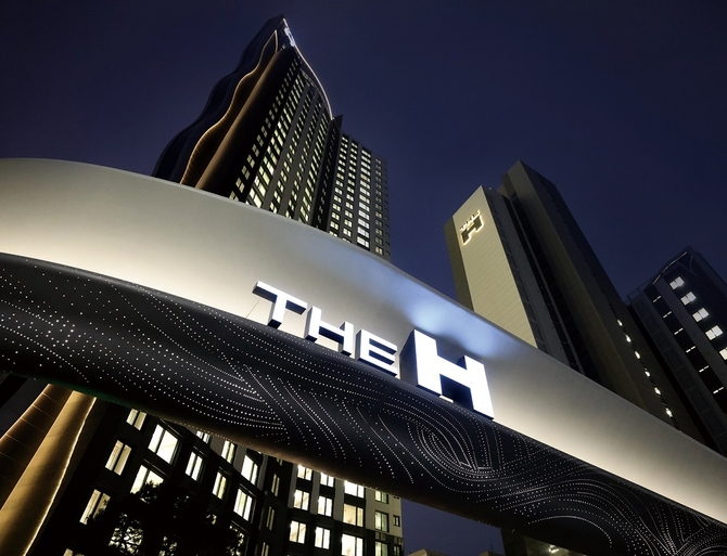 현대건설은 단지에 비정형 문주와 강남 최초로 유선형 외관을 적용했다. 3D 설계를 적용한 16개의 대형 철제에 약 2400개 스테인레스 스틸 판넬을 이어 붙여 만든 비정형 문주는 야간에 1만2209개의 조명이 불을 밝힌다.