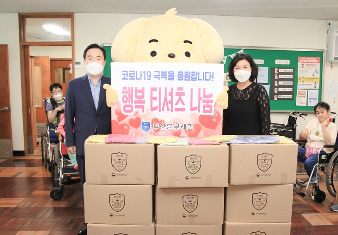 이어 부산본부세관은 중구 사회복지관 등 지역 복지단체 5곳과 인근 학교 6곳에도 행복 티셔츠 4천5백장을 직접 전달하고 코로나19 극복 응원 메시지를 전했다.