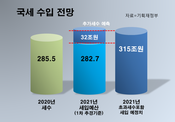 재정동향 중에서도 최근에는 국세 수입이 관심을 받고 있다. 자산시장 회복과 경기 회복으로 예상보다 세수가 크게 늘고 있기 때문이다.