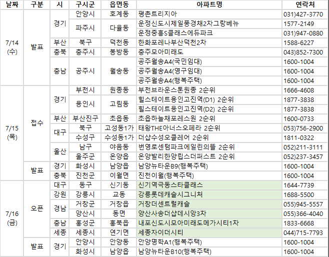 9일 부동산114에 따르면 2021년 7월 셋째 주에는 전국 17개 단지에서 총 9551가구(일반분양 7382가구)가 분양을 시작한다.