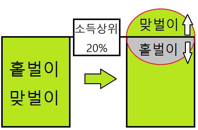 기재부가 말하는 홑벌이‧맞벌이의 뜻은 ‘중상층에서 경제에 기여하는 사람 수가 더 많은 가구를 배려해주겠다’는 뜻이다.