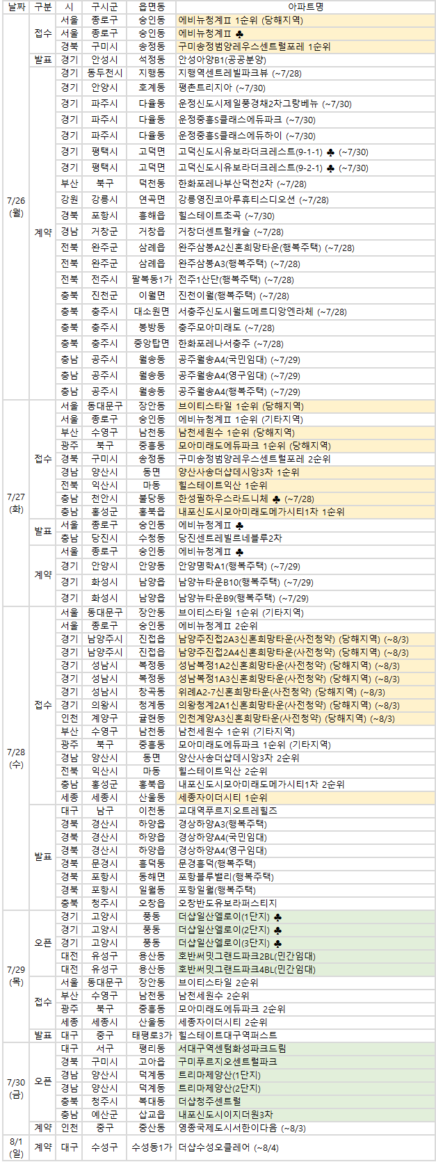 ◇ 청약 접수 단지
