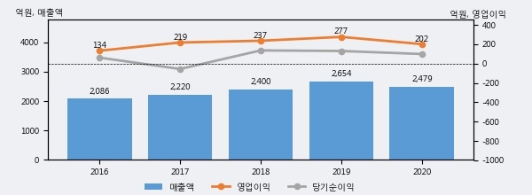 삼익악기의 2020년 매출액은 전년대비 -6.6% 줄어든 2479억원이고, 영업이익 역시 전년대비 -27.1% 줄어든 202억원을 기록했다. 이 회사의 매출액 증감률과 영업이익 증감률은 각각 코스피 하위 40%, 하위 33%에 해당된다.