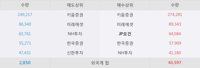 거래원 동향은 JP모건, 미래에셋, NH투자 등이 매수 상위 목록에 나타나고 있다.