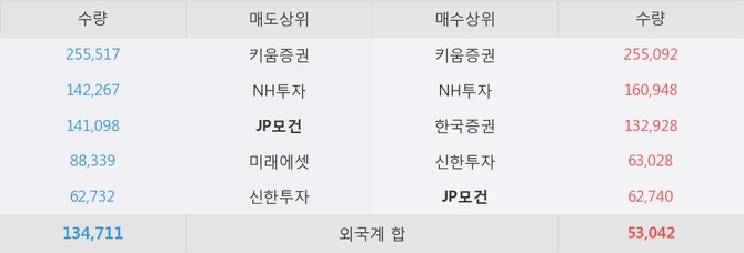 거래원 동향은 JP모건, NH투자, 미래에셋 등이 매도 상위 목록에 나타나고 있다. 한편, 매수 창구 상위에는 JP모건이 눈에 띄고 있다.