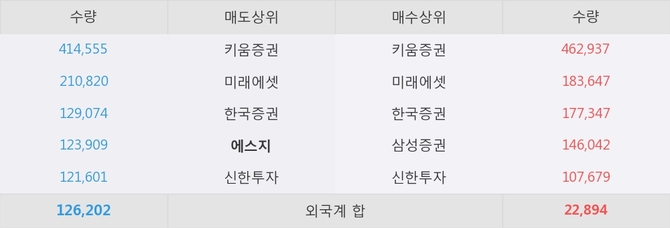 거래원 동향은 미래에셋, 삼성증권 등이 매수 상위 목록에 나타나고 있다. 한편, 매도 창구 상위에는 에스지가 눈에 띄고 있다.
