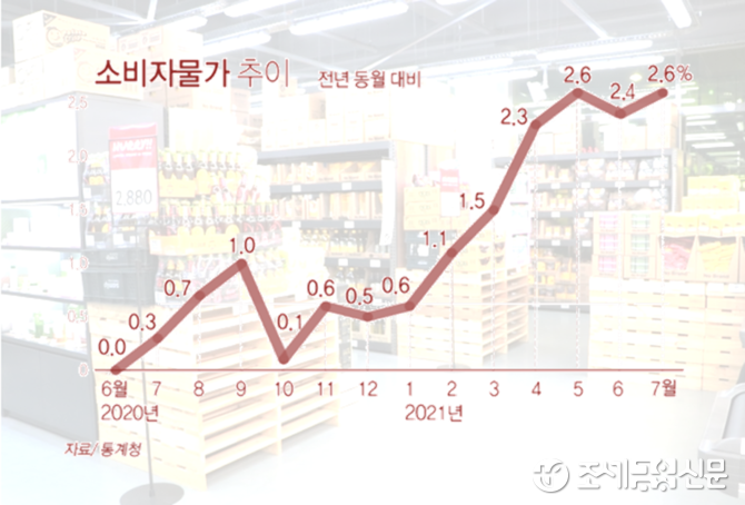 3일 통계청 소비자물가 동향에 따르면 7월 소비자물가지수는 107.61(2015년=100)로 지난해 같은 달과 비교해 2.6% 상승했다.