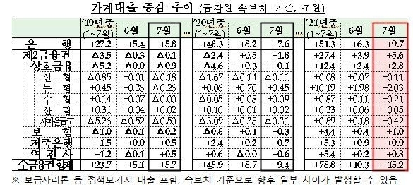 (조세금융신문=진민경 기자) 지난 7월 카카오뱅크 청약과 주택거래 증가 등 영향으로 전 금융권 가계대출이 15조원 이상 증가한 것으로 확인됐다.