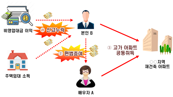 특히 재건축 기대감에 주택가격이 오르고 있는 고가의 재건축 아파트를 구입하면서 취득자금을 편법 증여 받은 혐의가 있는 경우, 탈루한 사업소득 또는 법인자금을 부당하게 유출해 취득한 혐의가 있는 경우가 다수 포착했다.