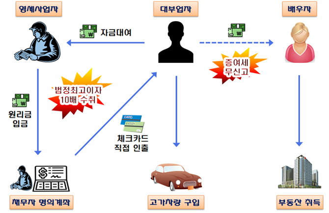 등록을 하지 않은 불법 대부업자 D씨는 영세사업자에게 고리대여 후 채무자의 체크카드로 직접 인출하여 이자를 챙기고 세금신고는 하지 않았다.