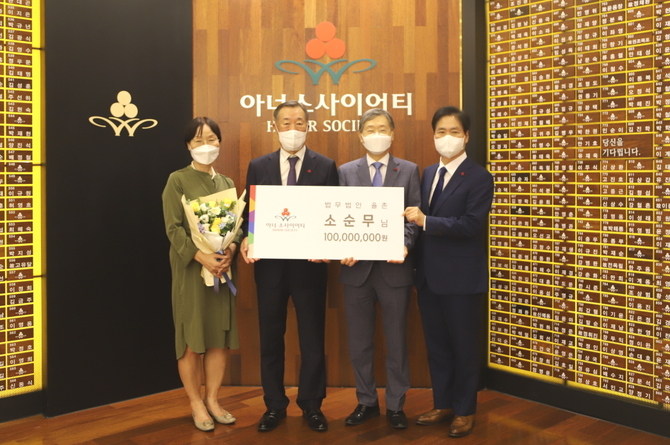 8일 소 변호사는 아너 소사이어티 회원 가입식에서 “올해 법의날 국민훈장 무궁화장 수훈을 계기로 사회적 책임감을 무겁게 느끼고, 나부터 솔선수범해 노블리스 오블리주를 더욱 실천해야 하겠다는 생각을 갖게 됐다”며 “기부금이 후견 관련 학회 및 공익 법인에 의미 있게 쓰이기를 바란다”고 말했다.