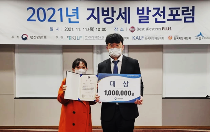 정 주무관은 자율주행 차량 소프트웨어 취득세 개선과 자동차세 감소에 따른 새로운 세수 확보를 위한 주행거리세 도입 및 기대 효과를 발표해 자율주행 차량에 대한 선제적인 과세 방안을 마련한 것으로 호평을 받았다.