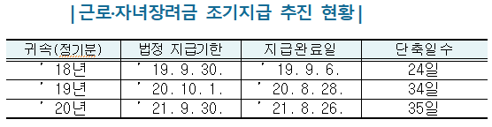 특히, 지난해와 올해는 코로나19로 어려움을 겪는 저소득가구를 최대한 빨리 지원하기 위해 법정기한보다 1달 이상 앞당겨 지급을 완료했다. 그 결과 8월말 지급이 완료되어 과거 ‘추석 보너스’라고 불렸던 근로장려금의 별칭은 더 이상 유효하지 않게 되었다.