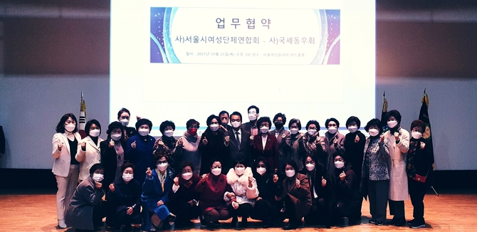 (조세금융신문=김영기 기자) 사단법인 국세동우회(회장 전형수)는 25일 동작구 소재 서울시여성단체연합회(회장 이정은)와 업무협약(MOU)을 맺고, 사회발전과 국가발전에 기여해 나가기로 했다.