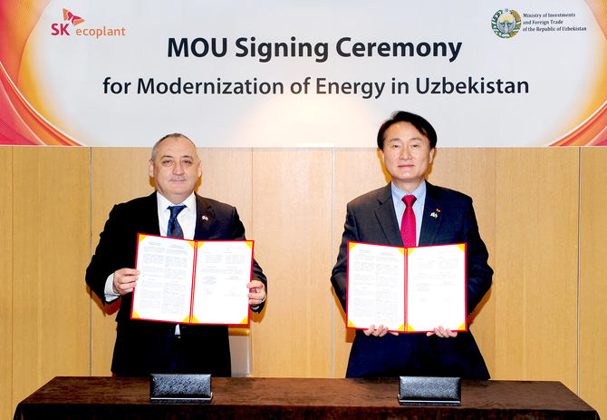 (조세금융신문=이정욱 기자) SK에코플랜트는 지난 17일 서울에서 우즈베키스탄 대외투자무역부와 '우즈베키스탄 에너지 현대화 사업 추진'을 위한 업무협약(MOU)을 체결했다고 29일 밝혔다.