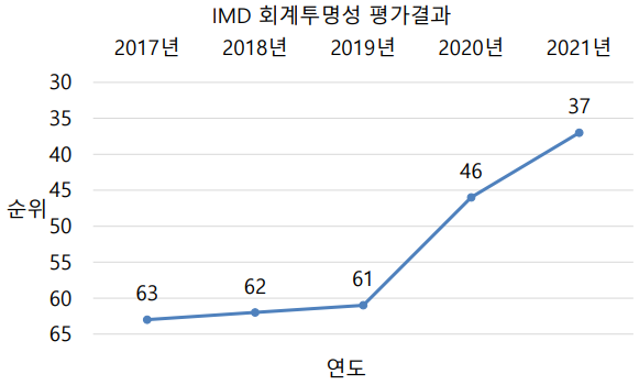 IMD는 2019년 이전까지 한국의 회계투명성을 60여개 조사국 중 꼴찌 내지 거의 꼴찌로만 평가했다.