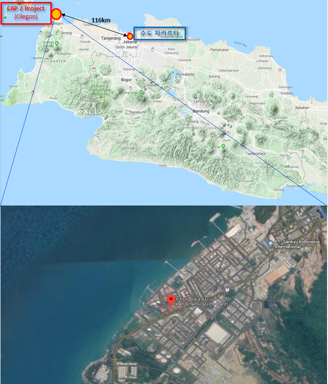 해당 석유화학단지(CAP2)는 인도네시아 수도 자카르타에서 서쪽으로 약 116km 떨어진 찔레곤 지역에 위치하며, ▲나프타 크래커 ▲부타디엔 ▲폴리에틸렌 ▲폴리프로필렌 ▲벤젠 등이 생산될 예정이다.