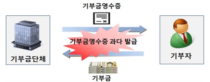 실제 수령한 기부금보다 큰 금액으로 거짓 기부금 영수증을 발급하여 줬고, 기부금 수령 내역을 관리하는 기부자별 발급명세도 작성‧보관하지 않은 기부금 단체가 이에 해당됐다.