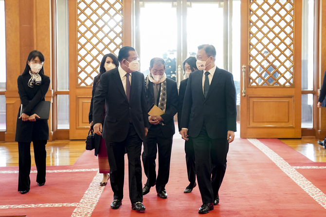 훈센 총리는 또 "캄보디아 산업에 대한 한국의 지원을 기대한다"며 "캄보디아는 새로운 투자법을 도입하려 하는데, 한국 투자자들도 혜택을 받을 수 있을 것"이라고 강조했다.
