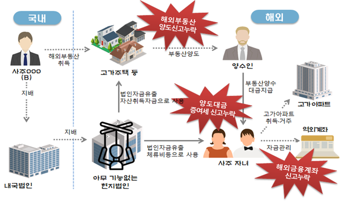 당연하게도 사주와 자녀는 해외부동산 양도 및 현금수증, 해외금융계좌 보유 등에 대해 아무런 세금신고를 하지 않았다.