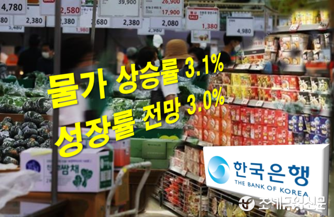 (조세금융신문=최주현 기자) 한국은행이 연초부터 뛰는 국제 유가, 원자재 등을 반영해 올해 소비자물가 상승률 전망치를 3.1%로 올려 잡았다. 하지만 올해 연간 실질 국내총생산(GDP) 성장률은 3.0%를 유지했다.