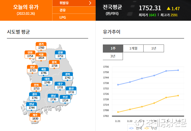 (조세금융신문=구재회 기자) 국제유가 상승이 지속되면서 전국 주유소의 휘발유 가격이 6주 연속 오름세를 이어갔다.