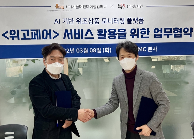 (조세금융신문=구재회 기자) AI 기반 위조상품 모니터링 서비스를 제공하는 ㈜흥지연이 캐릭터&브랜드 라이선스 사업을 선도하는 ㈜서울머천다이징컴퍼니(이하 SMC)와 업무협약을 체결했다고 8일 밝혔다.