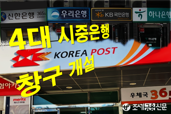 (조세금융신문=최주현 기자) 우정사업본부의 전국 우체국에 KB·신한·하나·우리 등 4대 시중 은행 창구가 개설될 것으로 보인다.