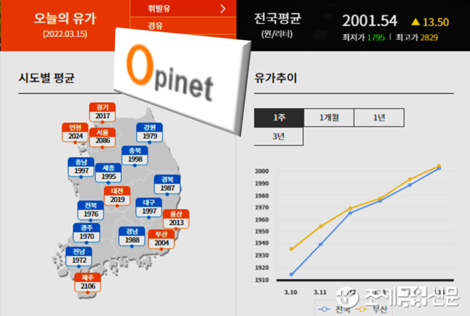 주간 가격 상승세는 더욱 가파르다. 3월 첫째 주 전국 휘발유 판매가는 전주 대비 24.2원 올랐으나 3월 둘째 주에는 한 주 만에 무려 100원(97.6원)이 뛰었다.