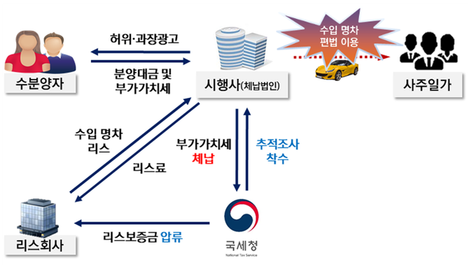 시행사 B는 고가의 수입 명차를 리스하는 방식으로 실질적으로 구매하여 대주주 등 사주 일가가 사용했다.
