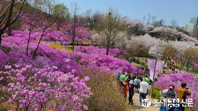 (조세금융신문=이지한 기자) 4월 둘째 주말 부천 진달래동산에 진달래꽃이 만개했다. 코로나로 인해 2년동안 출입이 금지됐던 진달래동산을 찾는 상춘객의 발걸음이 이어지고 있다.