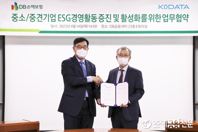 (조세금융신문=홍채린 기자) DB손해보험은 16일 KoDATA와 중소·중견기업의 ESG(환경·사회적 책무·기업지배구조 개선) 경영 활성화를 위한 업무협약을 체결했다고 밝혔다.