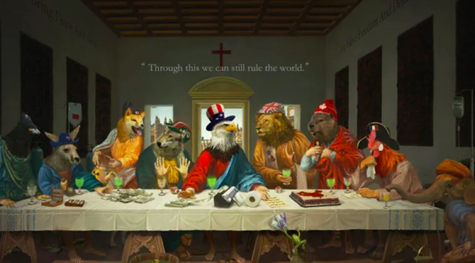달러가 외환보유고에서 차지하는 비중은 크게 줄었지만, 달러는 무진장 발행됐다. 2021년 중반인 6월12일 중국 최대 SNS인 웨이보에 영국에서 열린 주요 7개국(G7) 정상회의를 패러디한 ‘최후의 G7’란 그림을 보면 독수리 머리의 미국은 예수 자리에 앉아 휴지를 원료로 달러를 마구 찍어내고 있다.