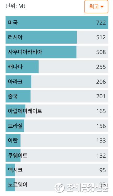 이제 추스려 보자. 2020년 기준 원유생산량 1위는 미국이다. 러시아가 2위, 사우디아라비아가 3위, 중국이 6위, 아랍에미리트(UAE)가 7위, 브라질 8위, 이란이 9위다.