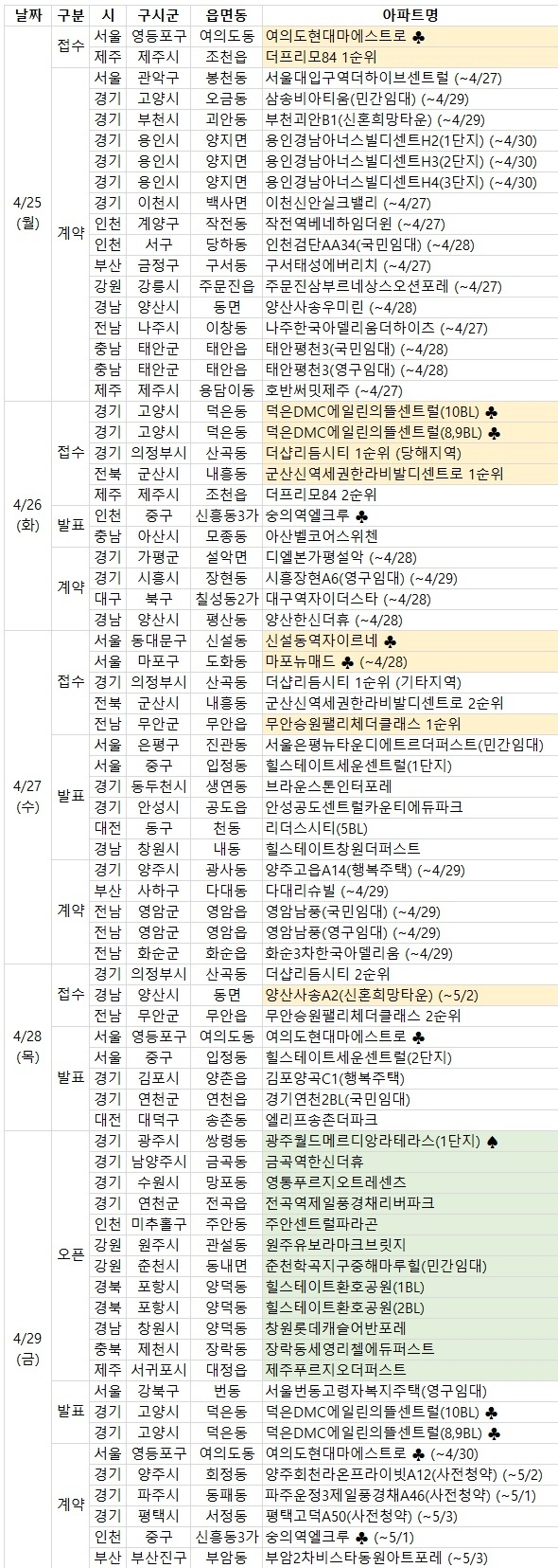 22일 부동산R114에 2022년 4월 넷째 주에는 전국 10개 단지에서 총 2,622가구(일반분양 2,413가구)가 분양을 시작한다.