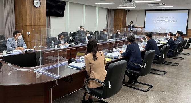 김명진 회장은 이날 간담회 인사말을 통해 “지난 법인세 신고시 인천청의 협조로 세무사사무소 종사직원의 코로나19 감염 등으로 인해서 기한 내 신고가 어려운 세무사사무실과 피해기업 모두에게 크게 도움이 되었다”고 인사말을 전했다.