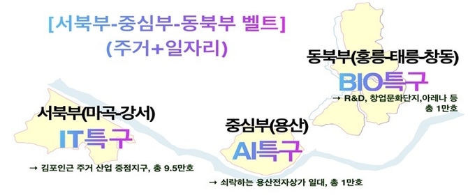 둘째, 상대적으로 낙후된 서울의 “서북부-중심부-동북부”를 연결하는 직주근접 도시를 조성해 주거와 일자리 문제를 동시에 해결하는 방안이다.