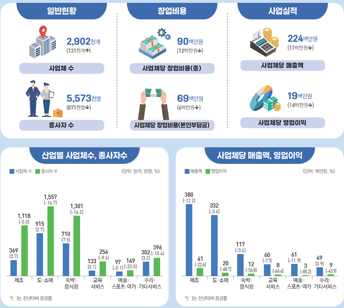 2021년 12월 28일 중소벤처기업부와 통계청이 발표한 2020년 소상공인 실태조사 결과(잠정).